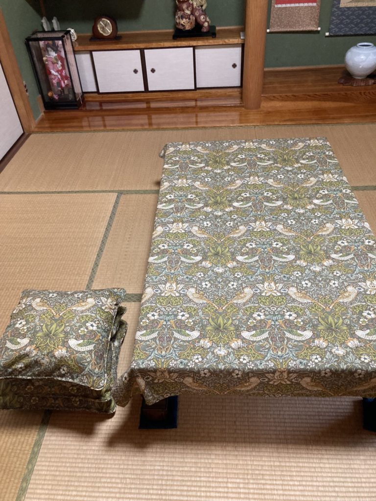 そして生地を大変気に入って頂き、こちらのテーブルクロスとクッションもご一緒にご注文いただきました✨